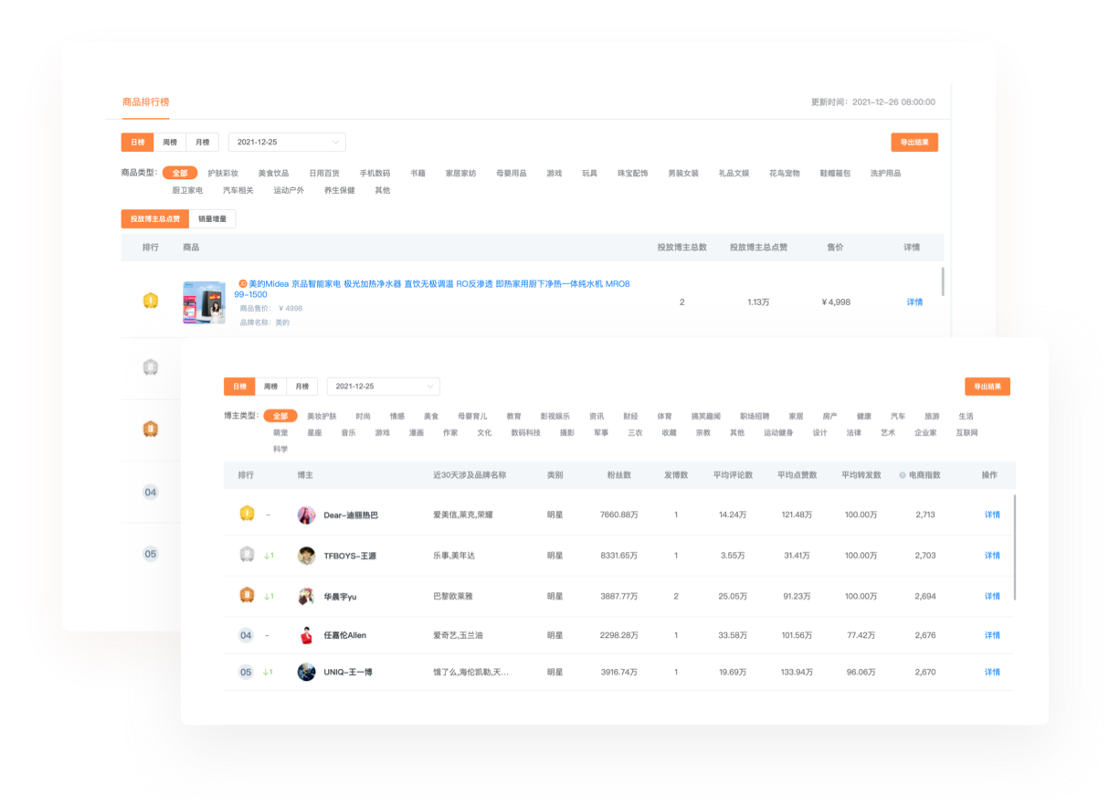 多項內容全面解讀達人,歷史內容追蹤,AI去水粉絲預估,智能算法評估達人價值,有效挖掘優(yōu)質達人